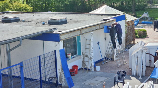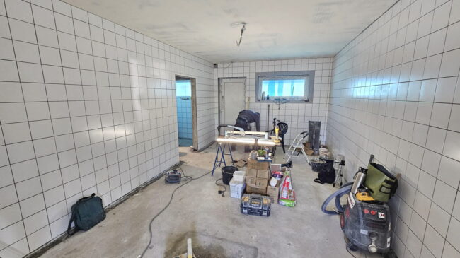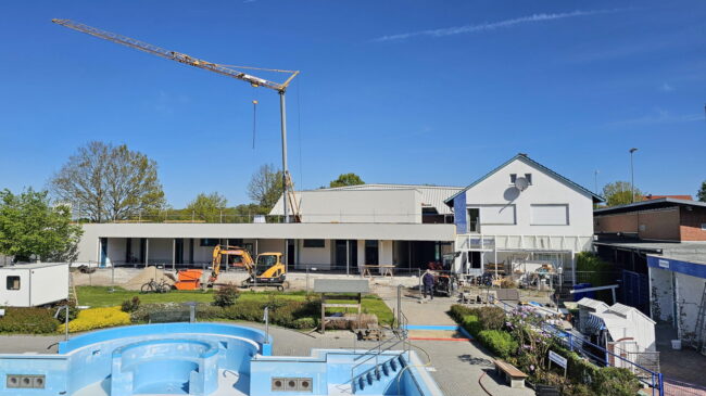 Auch Mitte Mai werden die Arbeiten sicherlich noch nicht abgeschlossen sein. Wir planen aber, dass dann zumindest 2 Sammelumkleiden und Sanitärbereiche festig gestellt sein werden und wir dann mit dieser begrenzten Umkleide-Kapazität in die Schwimmsaison starten können.