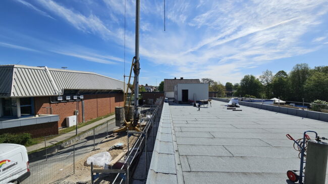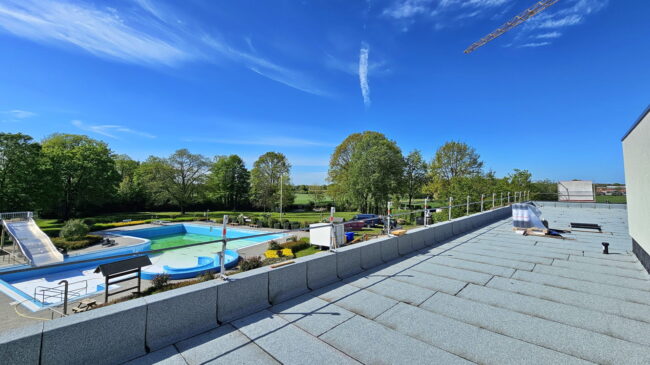 In den ersten 2 Wochen des Aprils gab es optisch keine großen Veränderungen auf der Baustelle. In Kürze werden die Fliesen- und Sanitärarbeiten in Angriff genommen. Auch mit der neuen Technik auf dem Dach kann jetzt begonnen werden. Der Umbau des gastronomischen Bereichs der Soleperle und des neuen Kassenbereichs schreitet ebenfalls voran. Das neue Kassensystem wird vermutlich für diese Saison noch nicht (voll) genutzt werden.